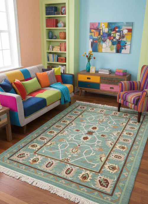 Handwoven Blue Blossom Kilim Dhurrie -